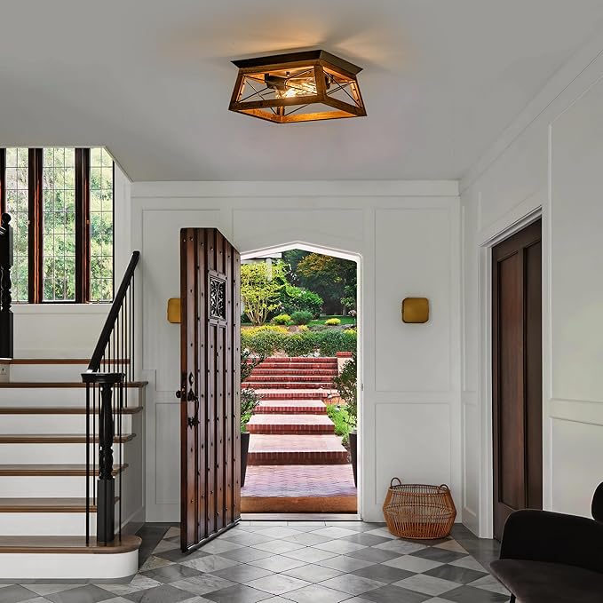 - 【Premium Wood & Sturdy Metal Frame】- Crafted with high-quality solid wood and durable metal, this flush mount ceiling light ensures long-lasting use. The open geometric cage design enhances both aesthetics and functionality, allowing ample lighting coverage.