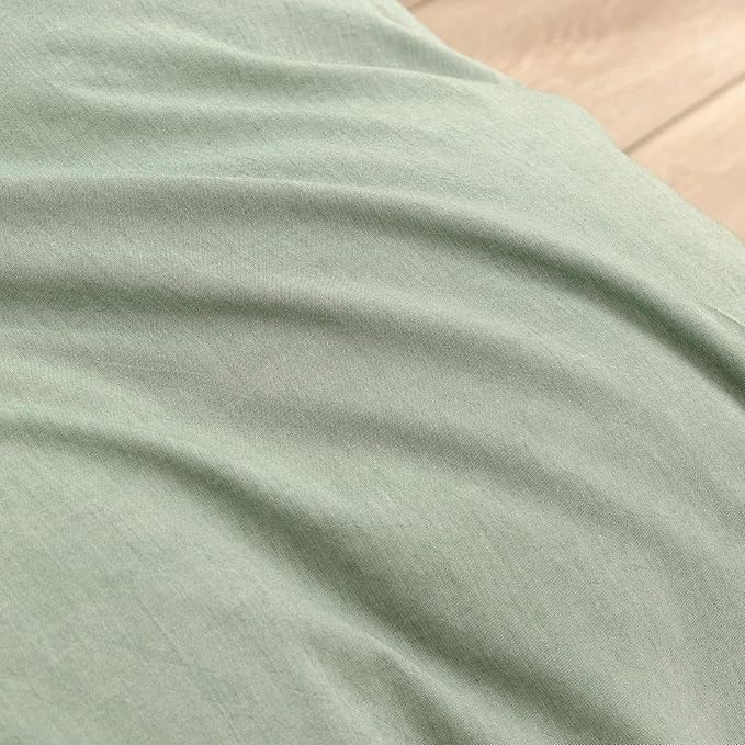 BESTOUCH Duvet Cover Set 100% Washed Cotton Linen Feel Super Soft Comfortable Chic Lightweight 3 PCs Home Bedding Set Solid Green Super King Plus