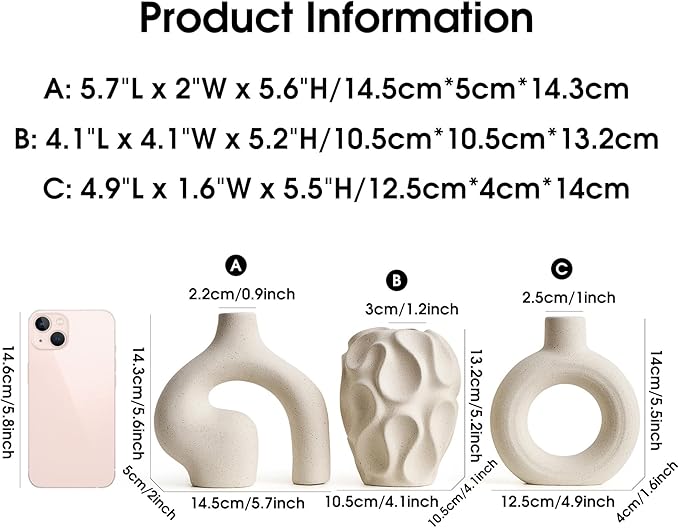 - Perfect for Home Decor - Due to the different and unique shapes of the white ceramic vase set, this donut ceramic vase is perfect for any home décor, whether it's bohe, minimalist Scandinavian, or modern, it's easy to handle. This white vase is also ideal for mantel decor, wedding decor, bedroom decor, coffee table decor, living room decor, bookshelf decor, etc.