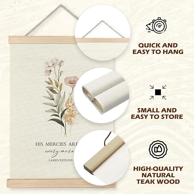 Supwhd His Mercies are New Every Morning Christian Wall Art, Christian Wall Decor for Bedroom Living Room Office 16x24