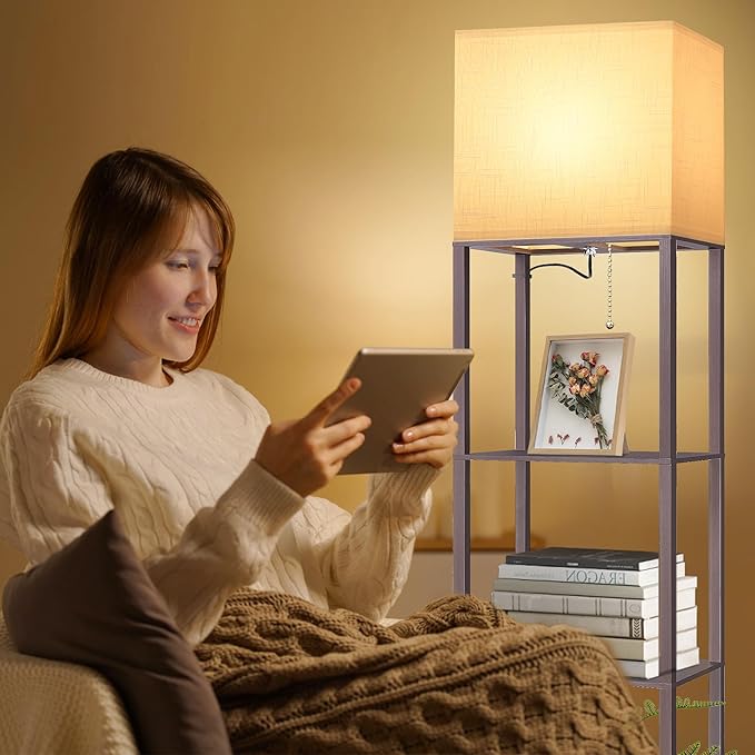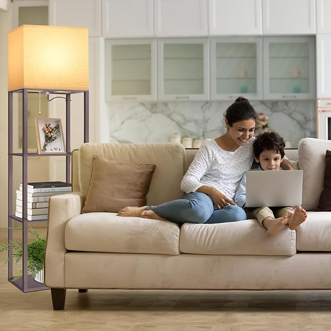 - 【Multi-functional Floor Lamp for living room】Floor lamp shelves, an excellent holiday gift and birthday gift for mothers, fathers, wives, husbands, children, and friends. Floor lamp with shelves, very suitable for living room, bedroom, reading room, office, library, kitchen, coffee shop, hotel, restaurant, etc.