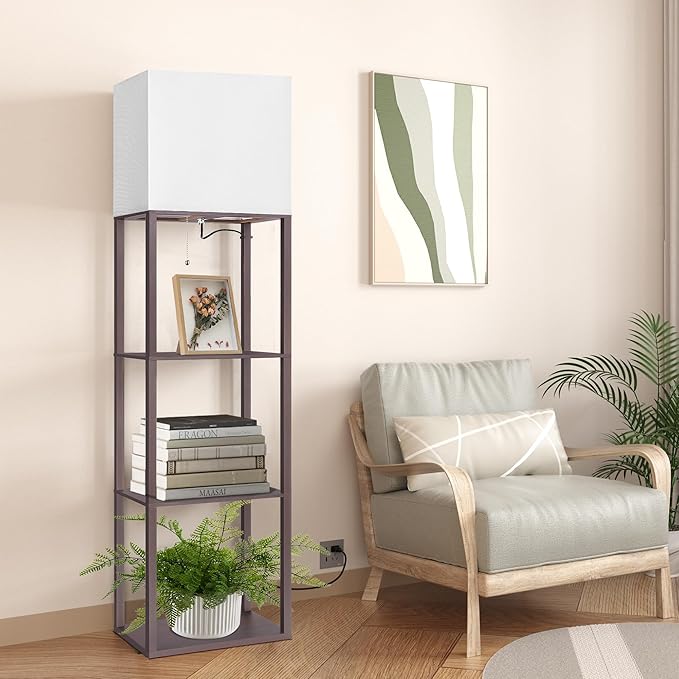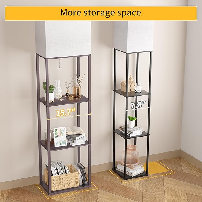 - 【Floor Lamp with Shelves】: Modern floor lamp with 3 shelves attached, Our shelf floor lamps are made of solid wood with stable structure,high loading ,which loads 50 pounds max. You can put photo frame, plants, books, or any items on it,Perfect floor lamp for livingroom, bedrooms, reading room and office