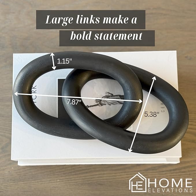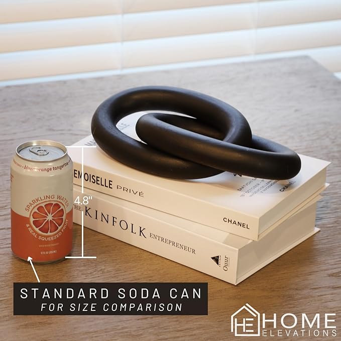 Wood Chain Link Decor – 13” Black Wooden Decorative Object for Coffee Table Decor & Neutral Decor for Home – Modern Knot Accent for Shelf Styling, Books, or Housewarming Gifts