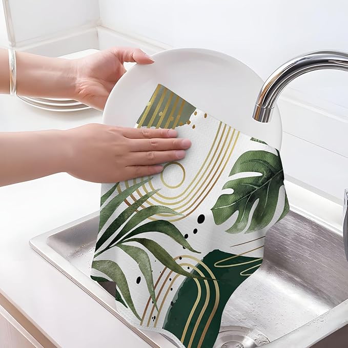- Boho Print Design: These summer dish towels use tropical leaves design and adopt advanced HD printing technology, which is able to make the leaf hand towels more vivid; Let mid century dishcloth decorate your kitchen in beautiful colors