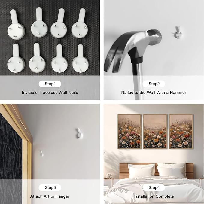 - 【Size for Easy Displaying】The size of 3 piece large canvas wall decor framed is about 16*24 inch (40 x 60 cm). Each abstract wildflowers wall art framed is equipped with hanging accessories, which need not be installed after receiving the painting, and can be directly hung on the wall.