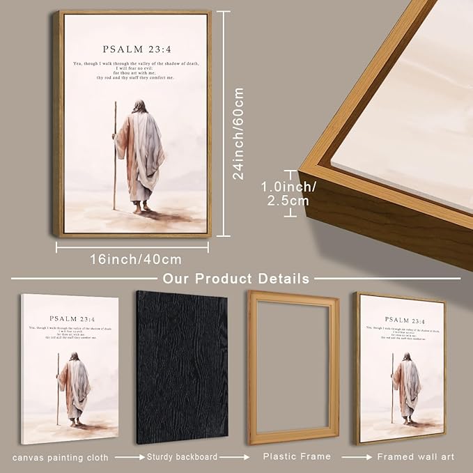 - 【Size for Easy Displaying】The size of scripture art framed Jesus is about 16x24 inch (40 x 60 cm). Each large religious painting is equipped with hanging accessories, which need not be installed after receiving the painting, and can be directly hung on the wall. Whether placed in a hallway, prayer room or church, it serves as a daily source of encouragement and faith.