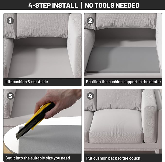 - 【Quick and Easy Installation】 Simply put our couch support under your cushions for an effortless fix. These couch supports for sagging cushions offer a fast, hassle-free solution to restore your sofa's original shape and support.