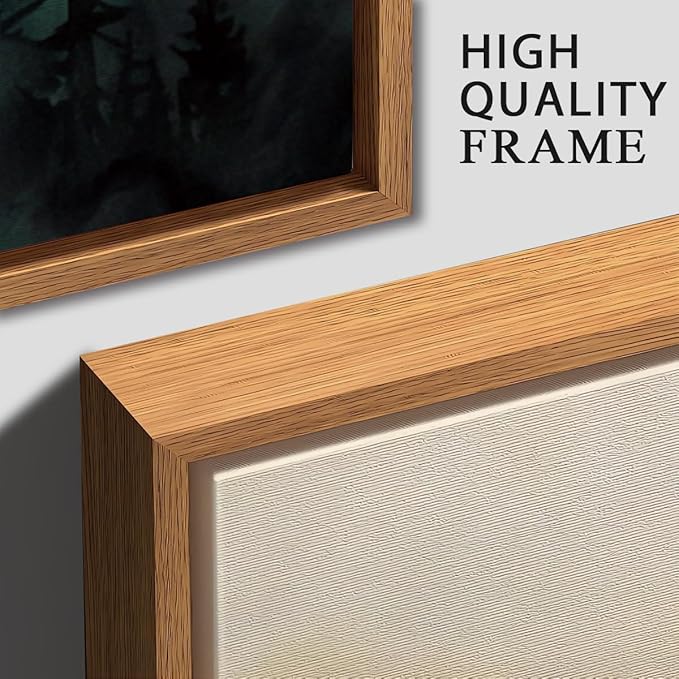 - 【Framed Green Mountain Wall Art 】This mountain canvas wall art framed set features a serene blend of mountains, pine trees, and sunrise hues, transforming blank walls into a calming nature retreat.The blend of soft sunrise gradients and misty mountain details bridges abstract art lovers and nature enthusiasts.