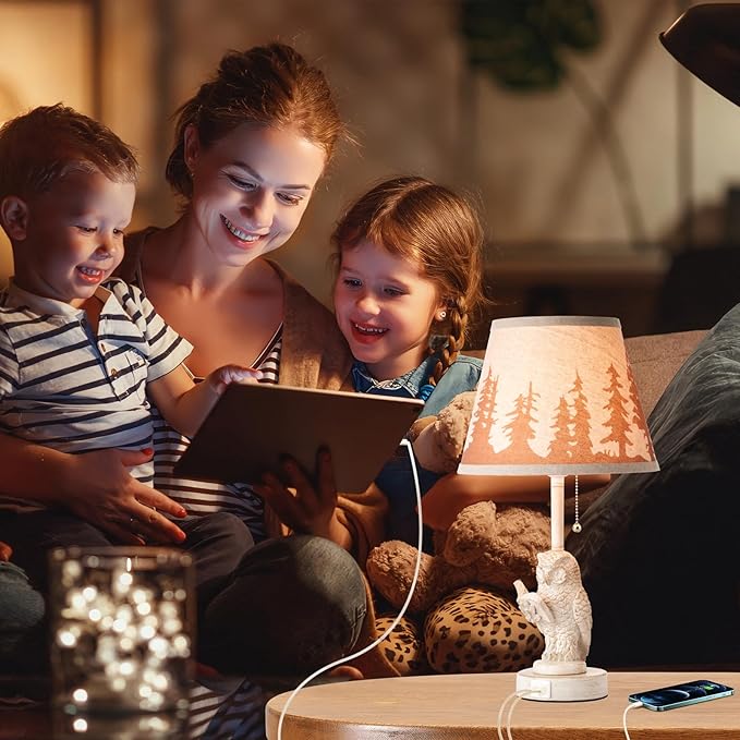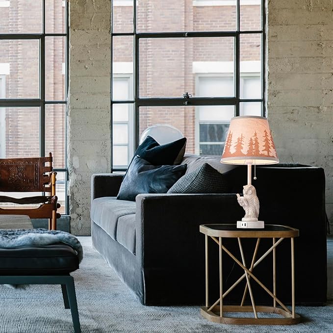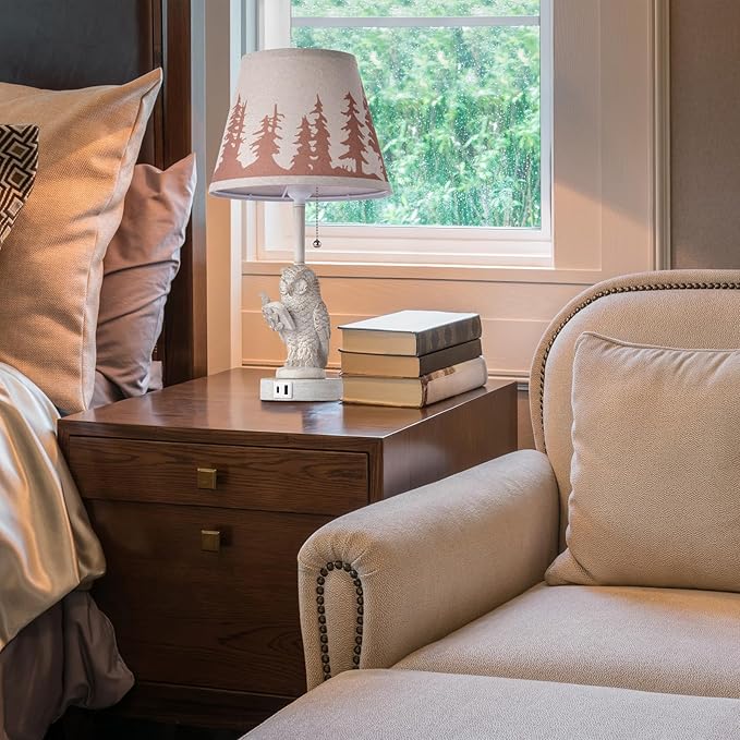 - Rustic Charm and Design: Bedroom lamps set of 2 crafted from retro style white metal and resin,beige linen fabric lamp shade adorned with a forest pattern.Rustic table lamp exudes a warm,western ambiance perfect for any farmhouse or country setting
