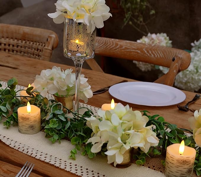 - [ Made of Real Wax ] New 3D flameless votive candles, each electric candle measures 2 x 2 inches. Melted edge design, birch bark real wax appearance, black wick, and simulated traditional burning candles flickering new 3D flameless. All this gives a more vivid and realistic appearance, instead of burning candles, which creates a soothing and relaxing ambiance