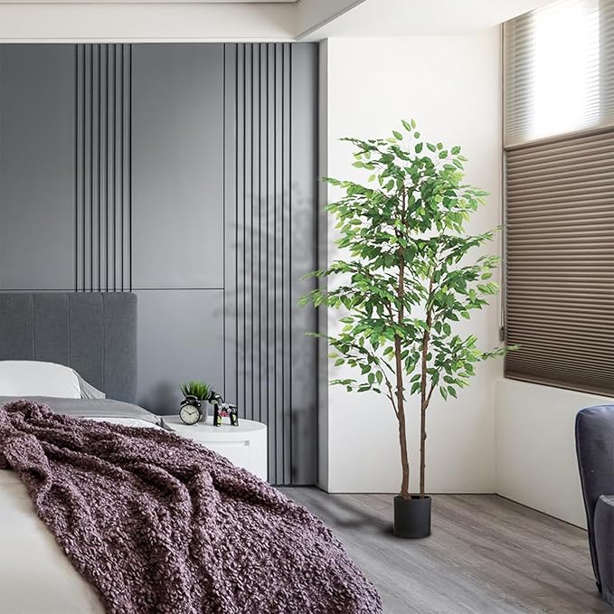 - 【Realistic Looking】There are no trouble of pollen discomfort in the Ficus Tree artificial indoor.The fake Ficus Tree creates a natural aesthetic that never withers with extremely realistic details and zero maintenance characteristics. Whether it's lighting up corners of your home or enhancing the texture of commercial spaces, it is an ideal choice that balances environmental protection, economy, and decoration.