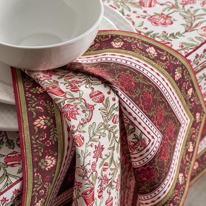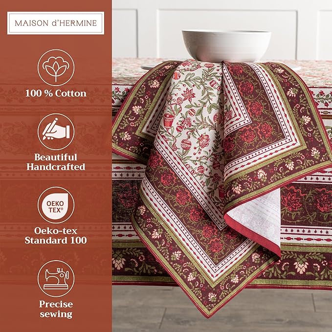 Maison d' Hermine Cloth Napkins Set of 4 100% Cotton Everyday Reusable Square Napkins Cloth Washable, Dinner, Party, Wedding, Restaurant (Reveillon Au Jardin, 20" x 20")