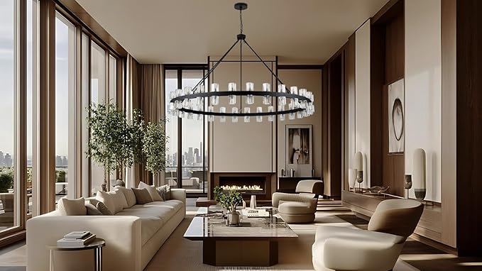 - 【Modern Wagon Wheel Chandeliers】: Our this classic and elegant black finishes wagon wheel chandelier ( with clear crystal shade ) is carefully designed to make it blend into the home environment by professional designers. Every part of the lamp body is created by the precise cutting of machinery and the ingenuity of human craftsmanship. The distinctive and eye-catching design of wagon wheel pendant lighting makes them an ideal centerpiece for any room. (Tips: Our chandeliers are too large. Please check carefully the size of the space where you want to install the light fixture before purchasing so that it can fit your space more perfectly.)
