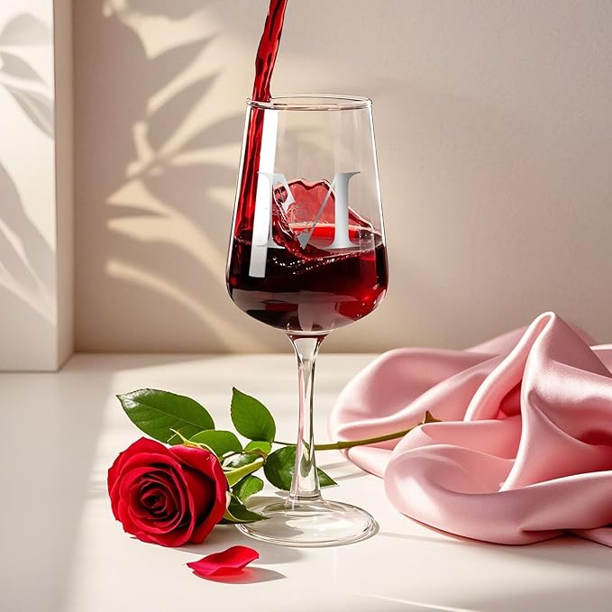 Monogrammed Wine Glass Gifts for Women - Personalized A-Z Wine Glasses with Gift Box & Greeting Card | Custom Mothers day, Anniversary, Birthday Gifts for Her, Mom, Wife, Best Friend, Sister,Woman (M)