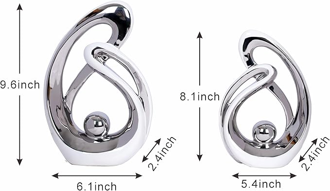 2 Pcs White and Silver Living Room Decor Table Sculpture Decorations Ceramic Statue Decor Mid Century Modern Decor Centerpieces for Dining Room Kitchen Fireplace Shelf Office Coffee Table Decor