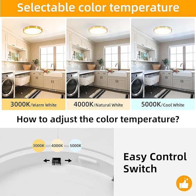 - 3 Color Temperature Selectable - Choose among 3000K comfortable warm white, 4000K neutral white, and 5000K cool bright light to suit your needs and style. Perfect for bedrooms, living rooms, kitchens, bathrooms, workspaces, and tasks like reading and studying