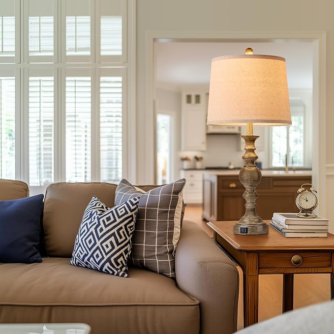 Farmhouse Table Lamps for Living Room Set of 2, Rustic Table Lamp with USB Ports, 28" Tall Table Lamps for Bedroom Nightstand, Bulb Not Included
