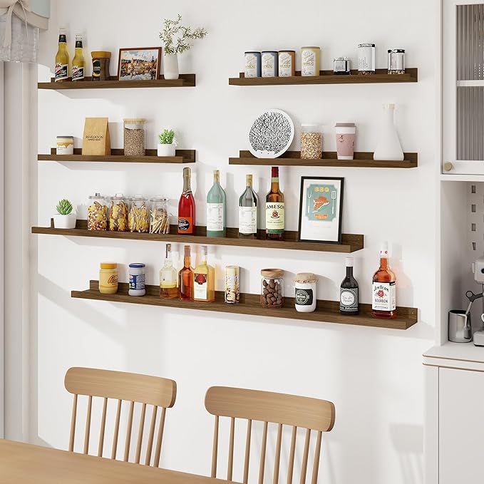 - Picture Wall Collage Decor: Do you have a lot of memorable photos, but don't know how to display them, our wood floating shelves are perfect for you! We offer 6 shelves, you can mix and match colors, height, length, and symmetry. With our long wall shelf set, your dull space will be transformed into wall art
