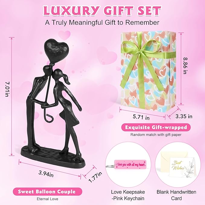 - WEDDING GIFTS ANNIVERSARY GIFTS BIRTHDAY GIFTS: Our exquisite gift set symbolizes eternal true love, appreciation and care. It uniquely includes an iron couple statue, a pink love keepsake and a blank greeting card. Each product is wrapped in beautiful gift paper(random match)and tied with a cute bow to make the gift more ceremonial! Heart-warming wedding gifts for couples 2025, anniversary gifts for women men, girlfriend wife birthday gift ideas, husband gifts