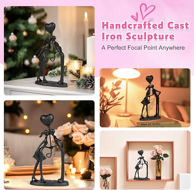 - ETERNAL COUPLE IRON SCULPTURE: Our eye-catching couple statue perfectly captures the sweet moment of the kissing couple, they will love for always forever! This romantic loving gesture is sure to be appreciated and cherished for years to come. Awesome handcrafted cast iron sculpture home decoration. It will always bring a sweet smile and a romantic feel. And the cute size of it is 3.94 x 1.77 x 7.01 inches, adding a touch of elegance to any space