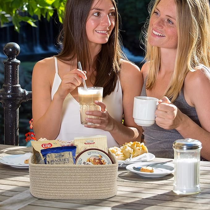 Small Woven Storage Baskets 13“X9”X5“ Decorative Rope Bins for Organizing Shelves, Closets, and Toys, Empty Gift Baskets, Cute Organizer Basket for Home and Office (oatmeal, Large)