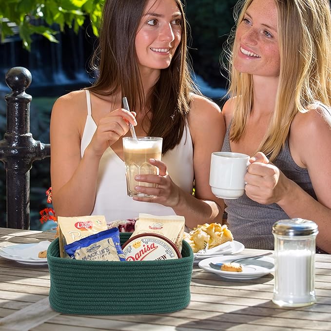 Small Woven Storage Baskets 13“X9”X5“ Decorative Rope Bins for Organizing Shelves, Closets, and Toys, Empty Gift Baskets, Cute Organizer Basket for Home and Office (dark green, Large)