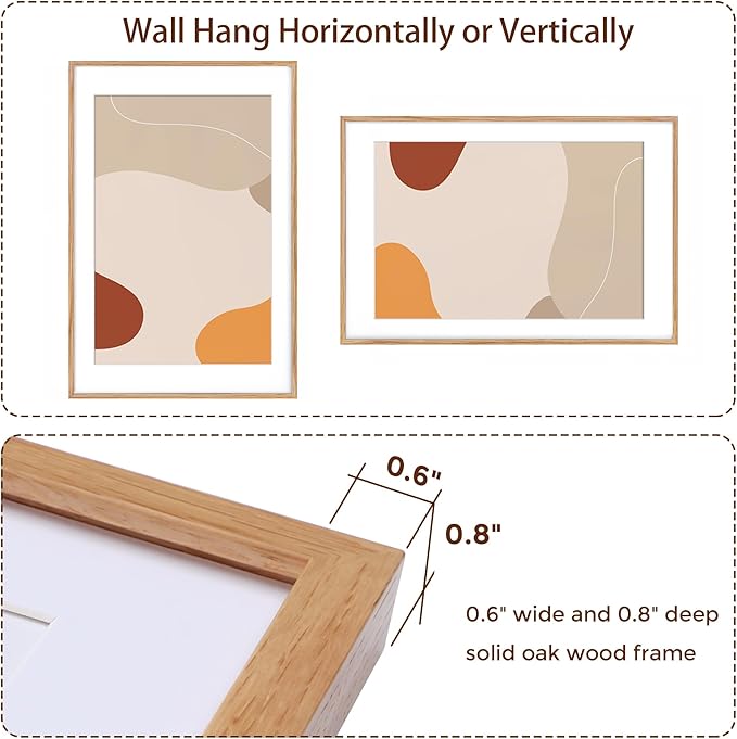 - HIGH-DEFINITION TEMPERED GLASS - This oak wood picture frame comes with sturdy 2.0mm tempered glass front, which is clear and lightweight, giving your photo in a good view condition and protecting them from scratches ,fingerprints, dirt, water. What's more, our glass with edge polished that protect you from scratching by sharp glass edges.