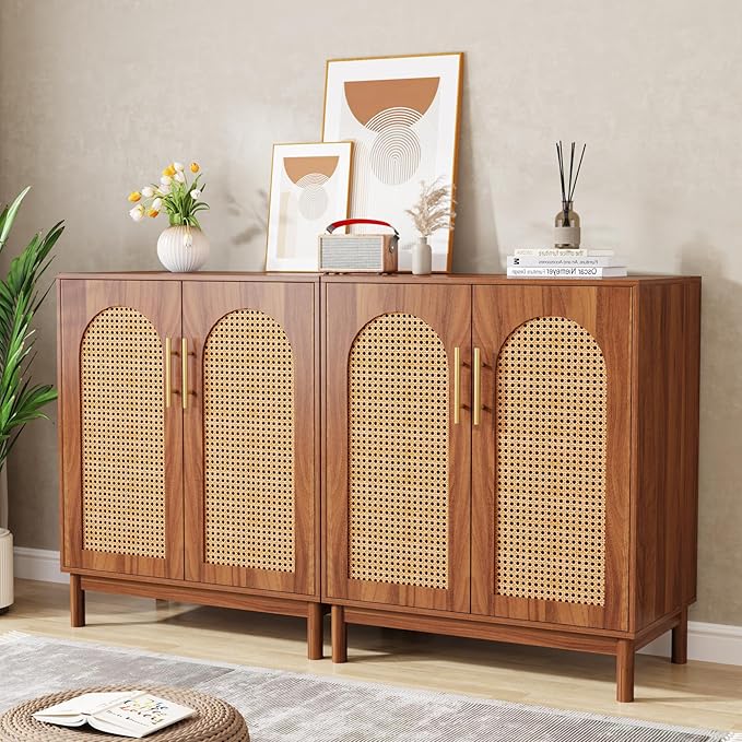 - VERSATILE MATCH FOR BUFFET CABINET: The rattan sideboard can be widely used as a storage cabinet, coffee bar cabinet, accent storage cabinet and TV console as you need. All-match design indoor furniture fits the kitchen, living room, dining room, office. The multi-functional feature makes it convenient for you to place it anywhere in your home.