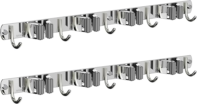 - STURDY AND FUNCTIONAL:The mop and broom holder wall mount is made of premium quality stainless steel, corrosion-resistant, rustproof and waterproof,wear-resistant, long-lasting and easy to clean