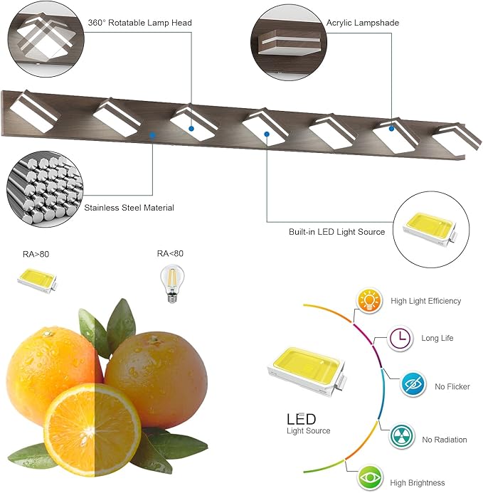 - 【Dimmable & Easy to Install】This sleek and modern vanity light very easy to install. Sturdy fixture, gives off great lighting. Light is very bright with a cool color temperature and shoots it down, easily dimmable to your needed brightness, put it on a dimmer to fit your mood.