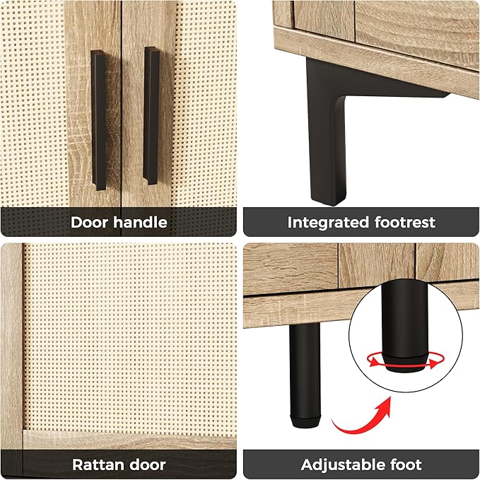 - 【MODERN AND CLASSIC BUFFET SIDEBOARD】- This Mid Century Modern Sideboard Cabinet With Rattan Decor Is Beautiful And Stylish, Combining Natural Finish And Rattan Decorated Door Surface, This Coffee Bar Storage Cabinet Adds a Touch of Natural Charm to any Room And It Will Be A Gorgeous Piece In Your Home