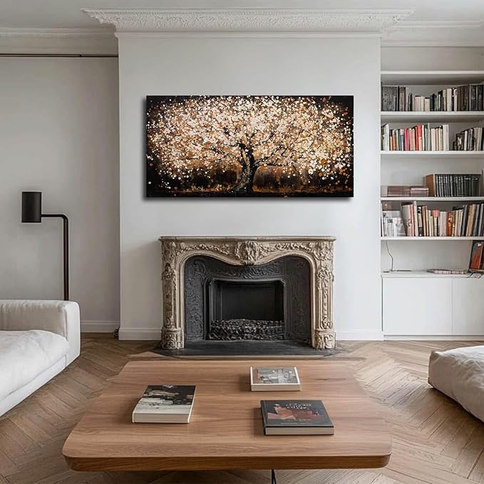 Plant Pictures Wall Art Flower Tree Painting Large Artwork Gold Hanging Decor 29"x58" Wall Decorations for Living Room Kitchen Art Posters