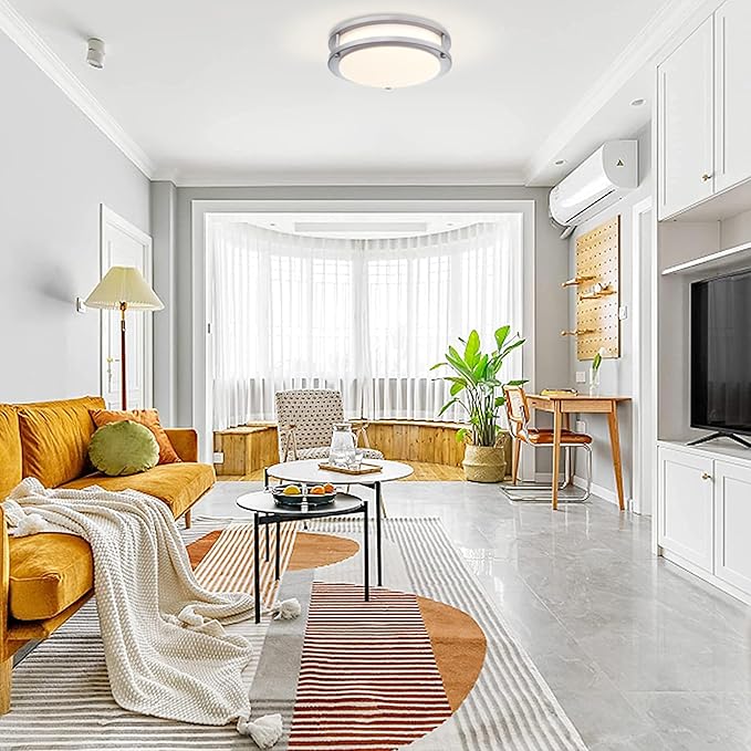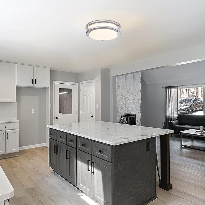 - Comfortable View Environment: With a CRI (Color Rendering Index) of 80, this flush mount brushed nickel ceiling light accurately reproduces colors, ensuring a more vibrant and true-to-life lighting experience. The ceiling lighting fixture has a low flickering rate of less than 30%, which helps protect your eyesight and provides a more comfortable lighting environment.