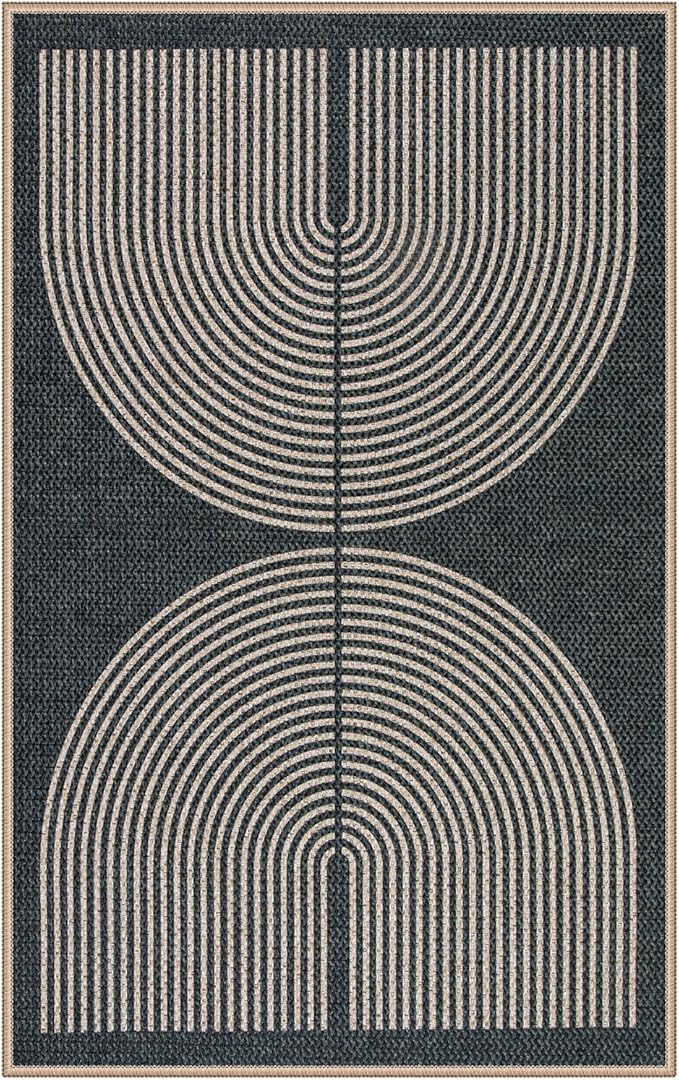 - Modern Rainbow Rug: Its beautiful graphic design combines lines and half circles to create double rainbow textures. Adding contemporary flair to any room, this rug complements a variety of spaces