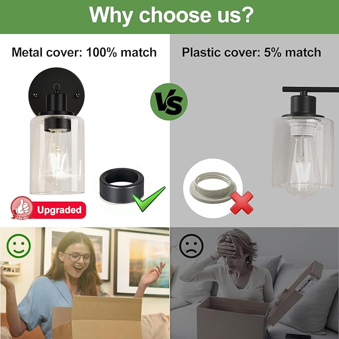 - 36-month warranty: We proudly stand behind all our 2 pack wall lamps for bathroom, guaranteeing their quality with a full 36-month warranty. If your bathroom light fixtures encounter any defects or stop working within 3 years, we are here to assist you with troubleshooting or provide a replacement. If you experience any issues with our wall light fixtures, please contact us through the Amazon message box, and we will respond within 24 hours.
