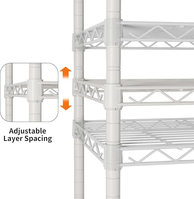- Convenient Home Storage: Metal wire shelves with adjustable spacing (11.5”D X 17.5”W X 45”H) make perfect for narrow spaces or room corners such as kitchens, bathrooms, laundry rooms, balconies, garages, entries, or offices.
