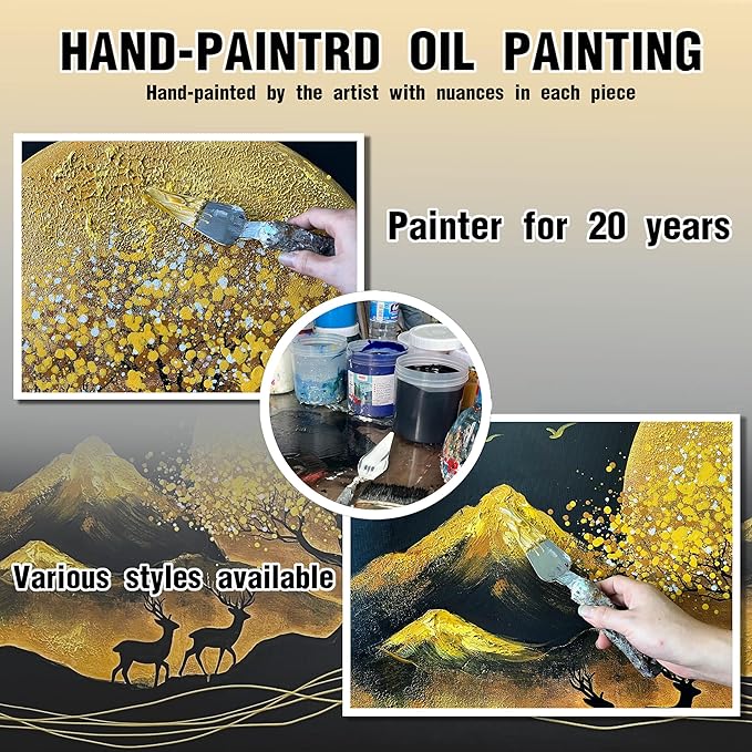 - 【Hand-painted】This is hand-painted by a professional artist. This original painting has a rich texture in the blend of brush strokes and actual colors. It is unique. Therefore the price is also a bit different from the canvas print.