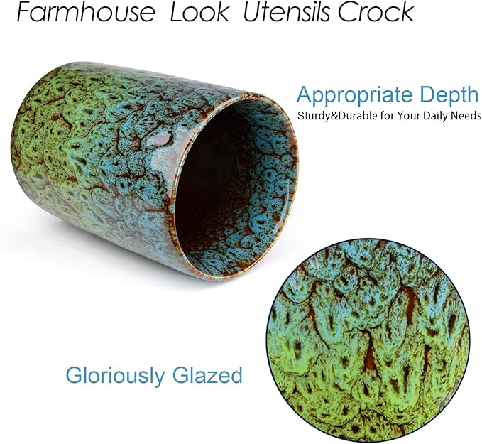 - Easy-Clean Ceramic Construction: Crafted from high-quality kitchen utensils holder material, this heavyweight ceramic crock wipes clean in seconds. Non-porous surface repels grease splatters and resists odors, maintaining kitchen hygiene effortlessly.