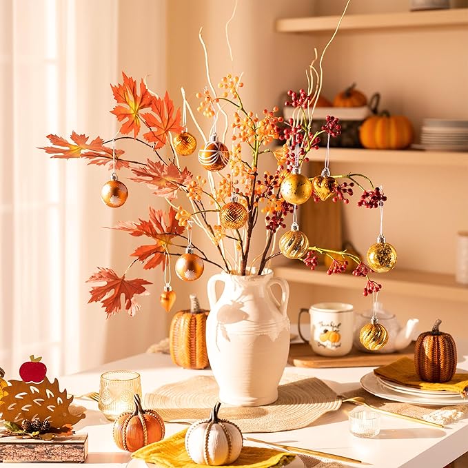 - 【Exquisite Craftsmanship】Our fall tree ornaments include variety of special finishes: mercury, mottled, shiny, matte, and glitter. The multi-finish and novelty shape ornaments meet all your favorite tree ornament needs, and the molding seam is almost invisible, making them look exquisite