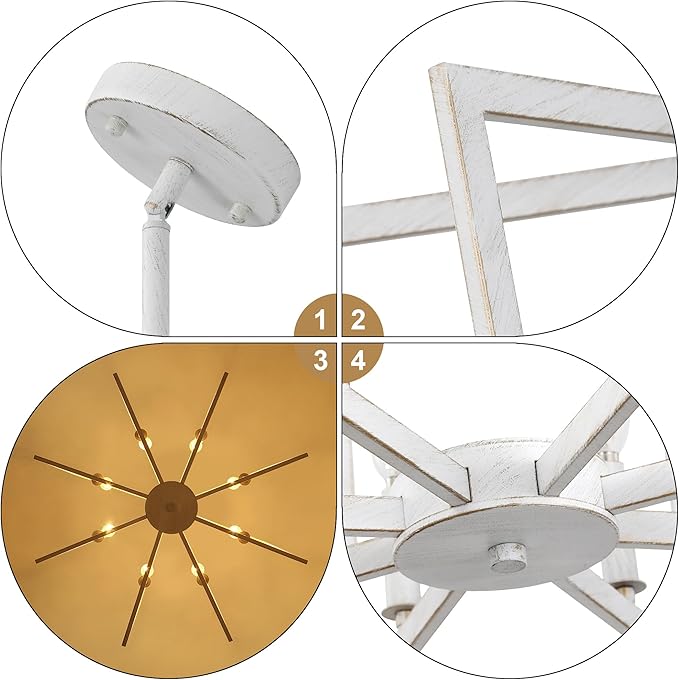 - Style & Design - White hanging chandelier is meticulously crafted by highly skilled craftsmen. Its consists of antique white metal frame with a minimalist silhouette, which better balances aesthetics and functionality. The unique appearance gives a stylish and antique look that leaves a lasting impression.