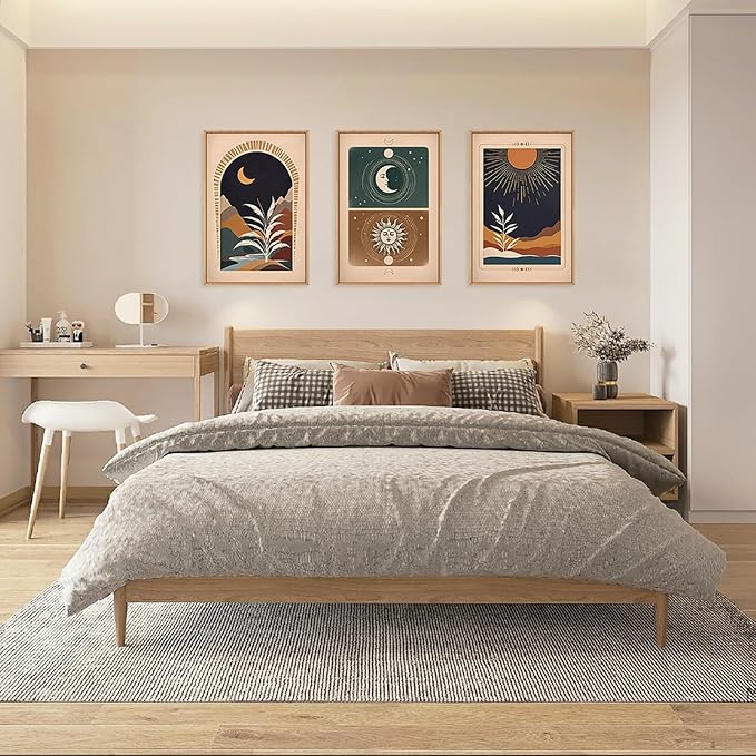 - 【Boho Sun and Moon Wall Art】The decorative paintings feature boho style design with warm color as the primary tones. They skillfully integrate elements of sun,botanical and moon to create a fresh and modern aesthetic.
