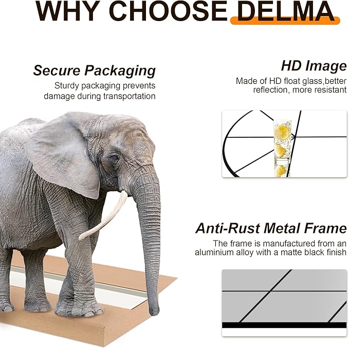 - Explosion-Proof Technology:Built with safety in mind, the explosion-proof membrane and tempered glass prevent glass shards from scattering, ensuring safety in high-traffic areas like living rooms, hallways, or offices. Ideal for homes with large mirrors for wall decor living room or metal wall art for living room, Delma mirrors offer peace of mind and durability.