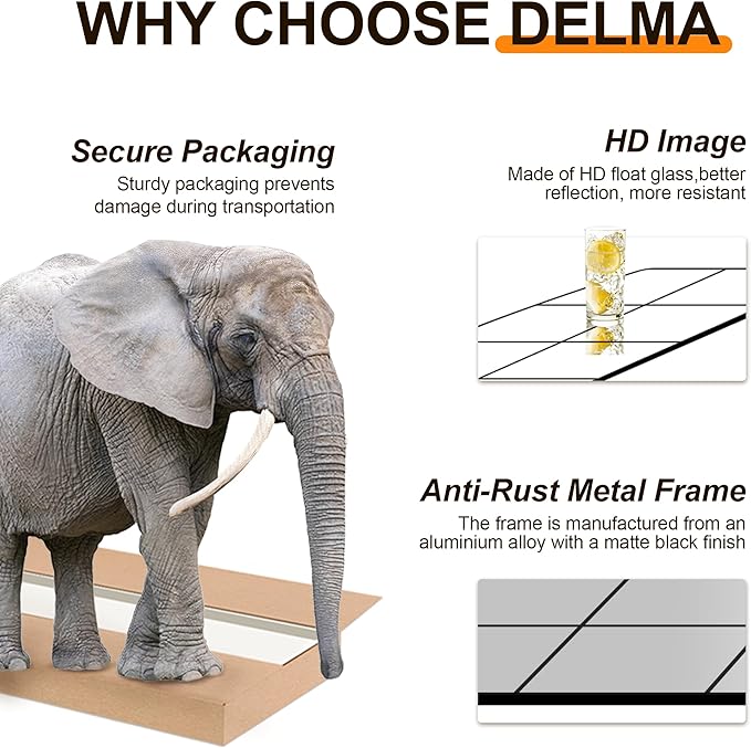 - Explosion-Proof Technology:Built with safety in mind, the explosion-proof membrane and tempered glass prevent glass shards from scattering, ensuring safety in high-traffic areas like living rooms, hallways, or offices. Ideal for homes with large mirrors for wall decor living room or metal wall art for living room, Delma mirrors offer peace of mind and durability.