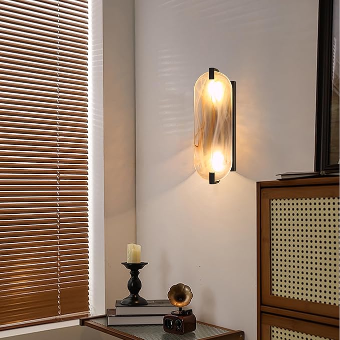 - 3.Glass Wall Sconce PERFECT FOR YOUR SPACE - The glass Wall Sconce is ideal for a variety of spaces for bathrooms.It's great in dining rooms,bars,kitchen counters,over sinks bedside living room bathroom library and in bedrooms.This Wall Lamp works with industrial, modern and transitional designs.