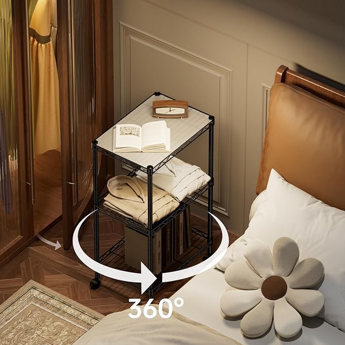 SINGAYE 3 Small Shelves Storage Shelf Wire Shelving Unit Metal Shelf Adjustable Organizers Storage Shelving with Wheels for Bathroom Laundry Room Kitchen Pantry11.5”D x 17.3”W x 30”H Black