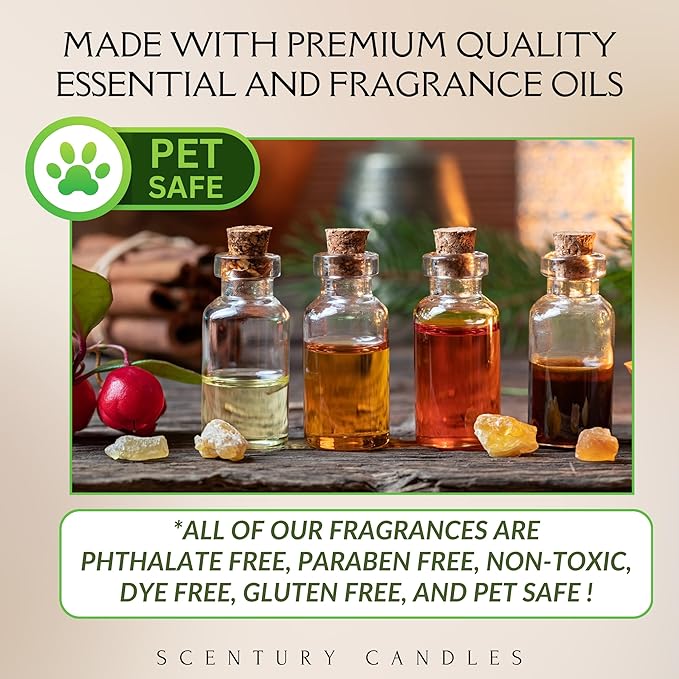 - 🇺🇸 OUR MISSION: At Scentury Candles Our Mission Is To Produce The Highest Quality Candles And Wax Melts Possible, And Are Handmade In Our Own Shop Right Here In The USA With Love. All Of Our Products Are Proudly Made Using Only The Highest Quality American Made Ingredients Available. We Use 100% Non-Toxic Soy Wax, A Perfect Blend Of Phalate Free Fragrance Oils And Essential Oils To Ensure A Safe And Beautifully Scented Atmosphere In Your Home.