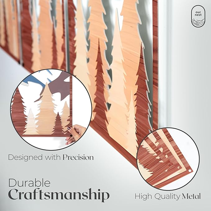 OUR NEST Metal Wall Art Set of 3 – Abstract Mountain Landscape Panels, 3D Rustic Nature Wall Decor for Living Room, Bedroom, Bathroom – Minimalist Metal Wall Sculpture, Modern Home Décor Gift (16" x 11")