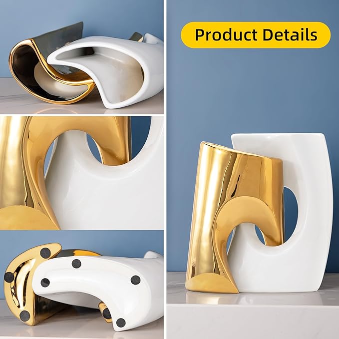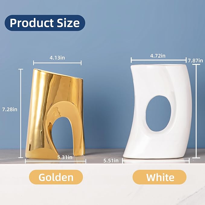 - Elegant Craftsmanship: Our ceramic vase set of 2 show a blend of timeless tradition and modern aesthetics, meticulously maunfactured to ensure each piece radiates elegance and high quality. The contrast between the shiny gold and matte white vase for flower creates a stylish accent that enhances any interior.