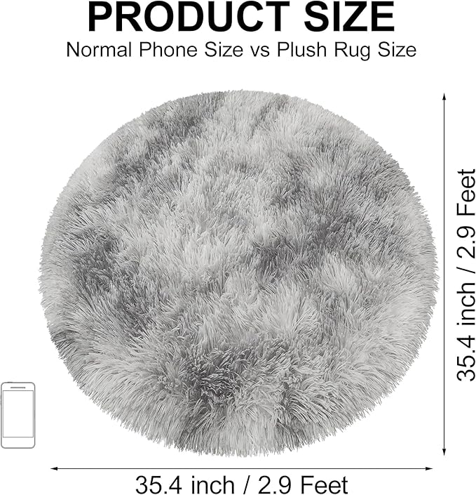 Tie Dye Grey Round Rugs Small 3x3 ft Fluffy Circle Rug Furry Carpet Shaggy Circular Fuzzy Plush Area Rug for Girls Bedroom Kids Room Living Room Nursery Cute Room Decor Pet mat Doormat