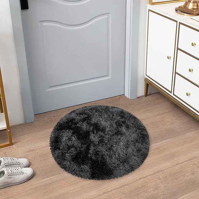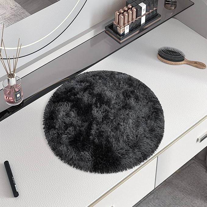 Tie Dye Black Round Rugs Small 2x2 ft Fluffy Circle Rug Furry Carpet Shaggy Circular Fuzzy Plush Area Rug for Girls Bedroom Kids Room Nursery Cute Room Decor Chair Cushion Pet mat Doormat